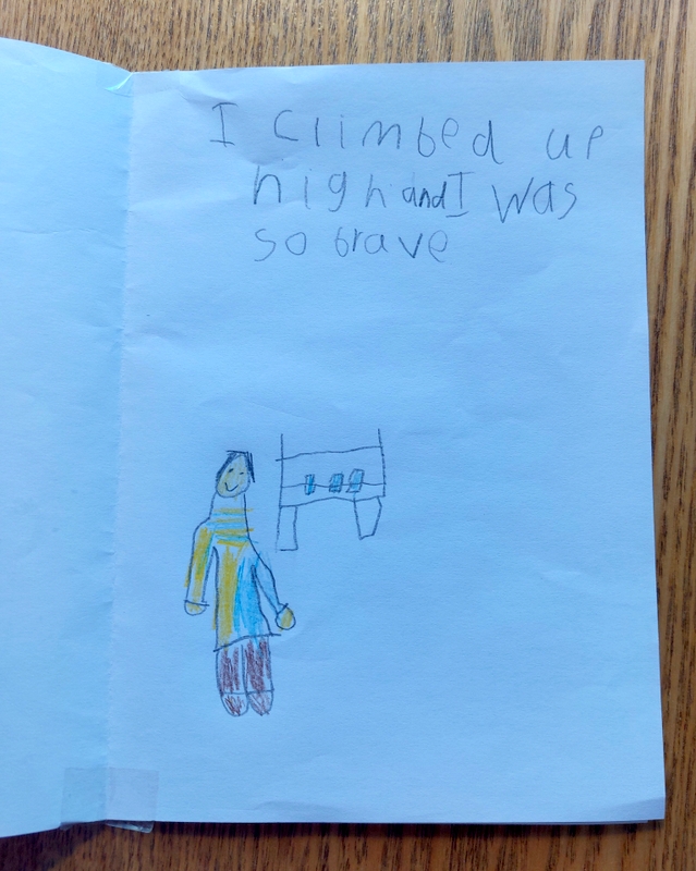 我寫這故事,是因為我與我們的姪兒一起製作「自己的書」,我們也真是在封面畫上自己喜歡的東西,並在內頁記錄了我們當天的成就。姪兒很高興地說那是他的own book,完成後,他還熱切地吻了他的書呢﹗
