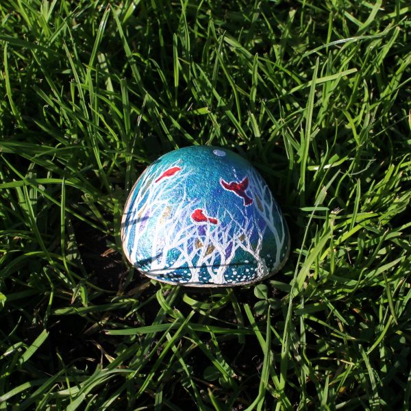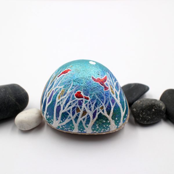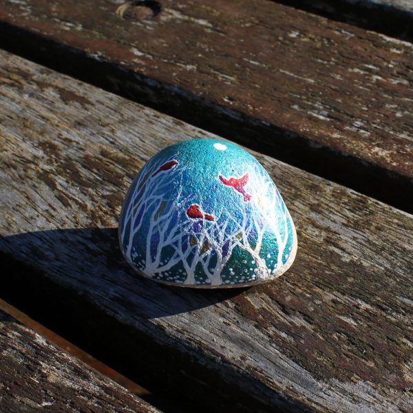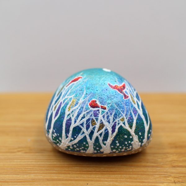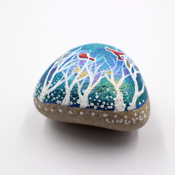 Decorate your home with this unique art I hand-painted stone with shiny metallic paints! You won’t find it elsewhere. You will receive the unique original stone by post with the order. We have only one in stock. The natural stone size is roughly 5 cm (length), 5 cm (width) and 3 cm (thick).
