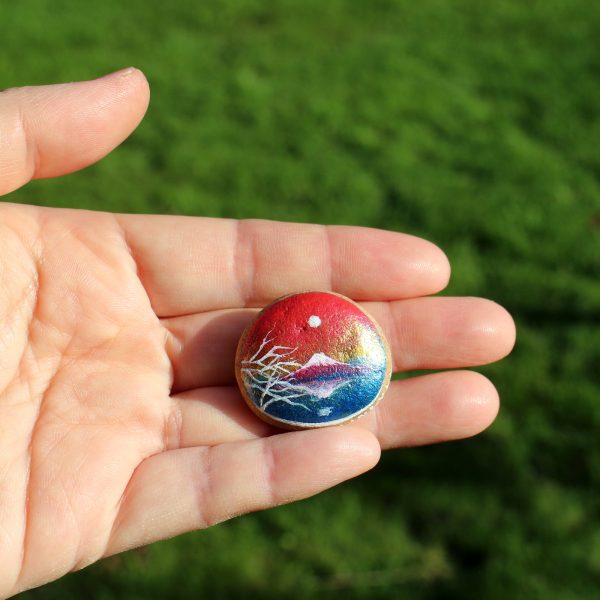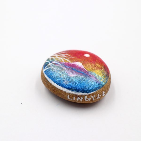 Decorate your home with this unique art I hand-painted stone with shiny metallic paints! You won’t find it elsewhere. You will receive the unique original stone by post with the order. We have only one in stock. The natural stone size is roughly 3 cm (length), 3 cm (width) and 1 cm (thick).